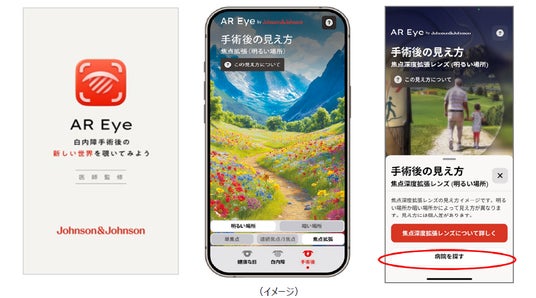 ジョンソン・エンド・ジョンソン*は、白内障手術の術前・術後の見え方をシミュレーションできる医師監修の無料AR(Augmented Reality: 拡張現実)アプリ「AR Eye(エイアール・アイ)」をバージョンアップし、提供を開始しました。「AR Eye」は、スマートフォンのカメラを通して、実在する風景にバーチャルの視覚情報を重ねて表示することで、二次元シミュレーション画像では表現することが難しかった、実生活における白内障の術前・術後の見え方を体験できるアプリです。