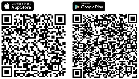 AndroidまたはiOSスマートフォン、タブレットで使用可能。以下の2次元バーコードから無料ダウンロードできます。