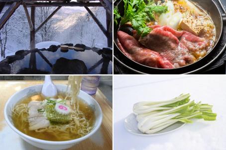 外の寒さと湯の温もりの雪見温泉、すき焼きや米沢ラーメン、冬しか食べれない伝統野菜・雪菜。身も心も温まり、癒され、満たされる時間を。