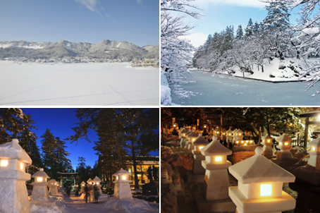 雪国の朝は静けさと澄んだ冷たさに包まれ、気持ちのよい時間に。そして夜は灯りの時間へ。上杉雪灯篭まつりの幻想的な光に包まれた世界は、朝とは違う趣深い時間を楽しめます。