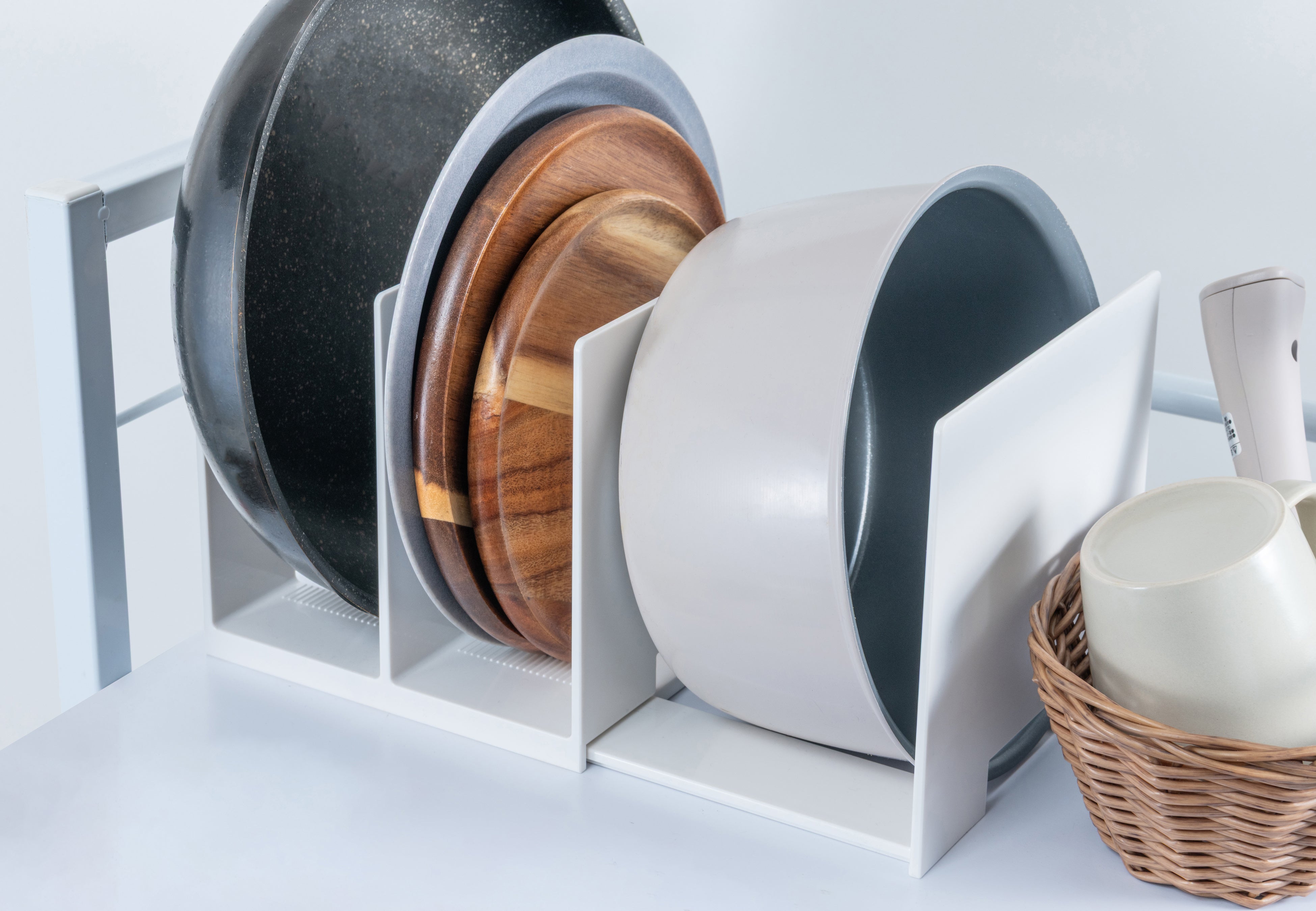 収納物にあわせて幅を拡張できるので、少なくてもしっかり挟み込めます。