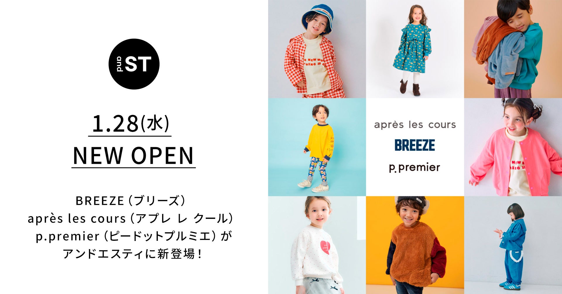 この度and STにオープンするF.O.Online Storeでは、株式会社F・O・インターナショナルが『世界中の子供たちに驚きと感動を与えるファッションを提供し、家族を笑顔にする』の企業理念のもと、「子どもたちの一番近くで健やかな成長を願うお母さんの視点・想いに寄り添うことを大切に」というコンセプトをベースに展開する「BREEZE(ブリーズ)」「apres les cours (アプレレクール)」「p.premier(ピードットプルミエ)」の3ブランドを取り扱います。