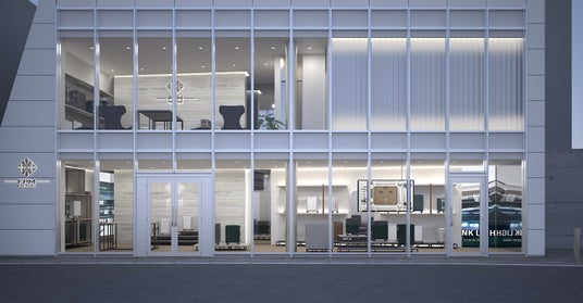 ガラスファサードとホワイトを基調とした空間には、ブランドを象徴する BANK コレクションを中心に、日本では表参道旗艦店だけでご覧いただける限定カラーや、様々なプロダクトを展開。