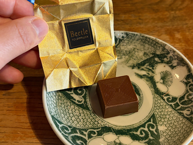 チョコレートの中に練り込まれた優しい味わいのキャラメルが甘すぎず、それでも存在を主張しており、ビートル型じゃないけど主役をはれる一品でした。