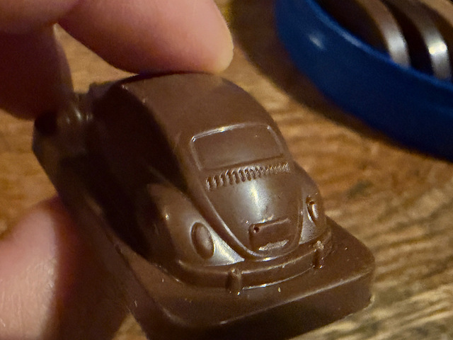 ちなみに、ビートルはリアウィンドーの形が特徴的で、それぞれの形を指す「オーバル」「スプリット」「スモールスクウェア」などで各年代のモデルを指すニックネームになっています。このモロゾフコラボのビートル型チョコレートは、スクウェア型でしょうか。