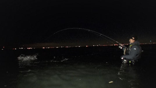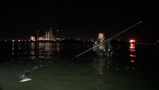 午後10時、気温3℃。大潮の干潮のタイミングを狙いすまし、東京湾に出撃。海に腰まで浸かり、同じ目線で魚と対峙する厳寒のウェーディングシーバス。