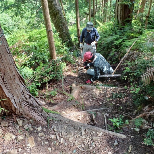 ◆熊野古道の保全活動熊野古道は多くの住民ボランティアにより守られています。各所の”峠を守る会”などの20を超える保全団体があり、ボランティアで古道の清掃、草刈り、補修等、維持管理を行っています。熊野古道を安全に楽しむために必要な活動を行う団体ですが、現在会員の高齢化が進行しており、今後の担い手問題が課題となっており、各団体と行政が連携して持続可能な熊野古道維持保全に向け様々な取組を実施しています。