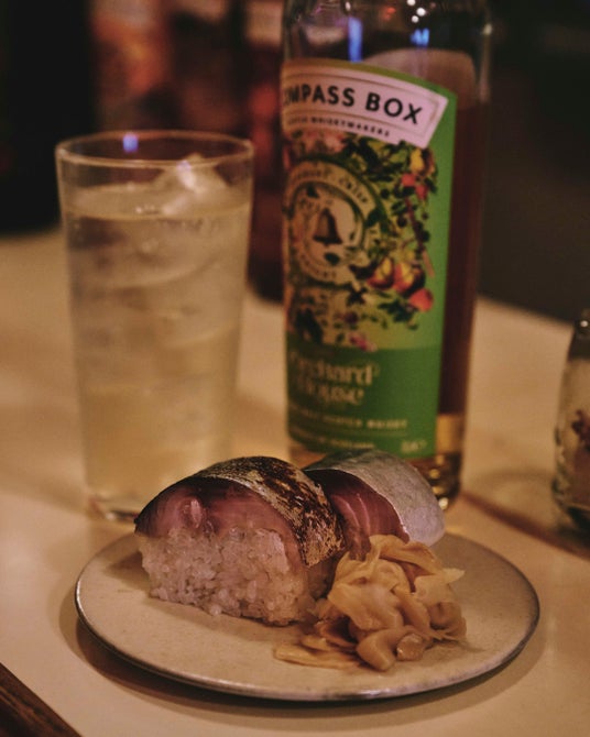 日常四富会館に店を構える、会話が主役の酒場。寿司職人の家系に生まれた店主が手がける鯖寿司が名物だ。本企画では〈オーチャード ハウス〉をハイボールでセレクト。名物「鯖寿司」とのペアリングを楽しめる。脂の厚い鯖寿司に対し、果実のニュアンスと穏やかな酸が静かに寄り添う。酒が主張しすぎることなく、会話の合間に口を整える役割を果たし、場の空気を支える一杯として機能している。