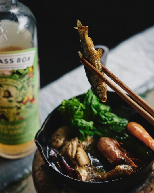 ザコトラ商店京都の昼酒文化を象徴する一軒。「赤垣屋」の4代目店主が営み、七輪や生簀を活かした料理と酒を提供している。本企画では〈オーチャード ハウス〉をハイボールで提案。イギリスでも手に入りやすい食材で、ラベルデザインのカラーを意識したという「菜の花、川魚、海老、牡蠣のオイル煮」を合わせ、果実味と酸が油をきれいに切る。食材が重なっても味が濁らず、昼酒の流れの中で自然と手に取られる一杯となっている。