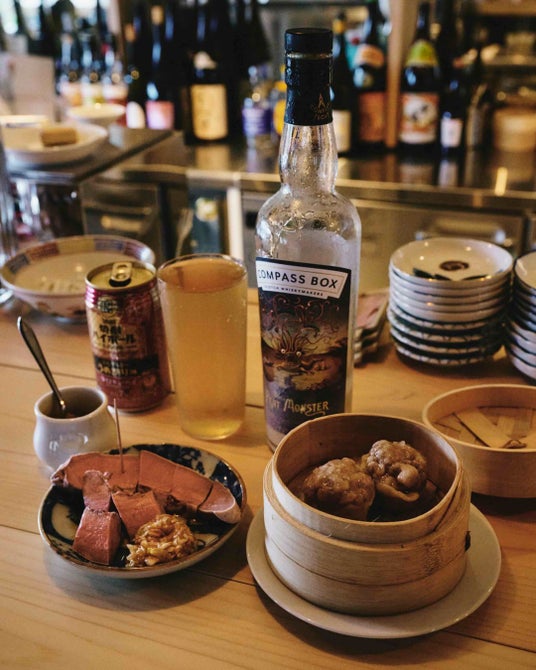 Hz(ヘルツ)京都・仁王門通り、通称“ザコトラビル”の一角に佇む酒場。ワインを軸にしながら、焼酎やウイスキーも自然に受け入れる、軽やかな立ち飲みスタイルが特徴だ。本企画では、〈ザ・ピート・モンスター〉をセレクト。梅割りスタイルの焼酎ハイボールを思わせる飲み口で提案する。合わせる一品は、茹でた豚タン「宇タンナマ」と店主の名前を冠する「健康シウマイ」。酸と脂、スモークが重なり合い、酒を主役にしながらも小皿料理にまで仕事が行き届いた一軒である。