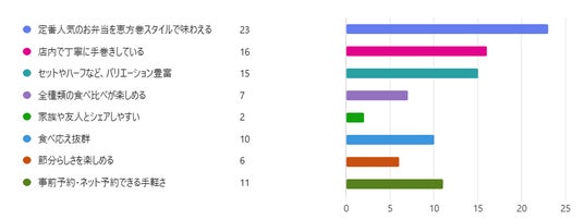 調査内容:『恵方巻シリーズ』のおすすめポイントを選択肢の中から2つ選択