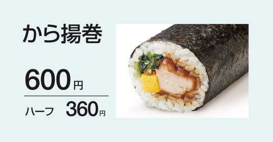 “人気のお弁当”を店内で1本1本丁寧に巻いた「恵方巻」は、全3種類。白身フライやちくわの天ぷら、キンピラなど定番の『のり弁当』の具材をそのまま巻いた『のり弁巻』540円、甘めのタレで味付けしたから揚や、だし巻玉子を巻いた食べ応え抜群の『から揚巻』600円、甘酸っぱいチキン南蛮と具だくさんのタルタルソースがたまらない『チキン南蛮巻』660円の全3種、各商品ハーフサイズもご用意しております。また、全種類の食べ比べが楽しめる『恵方巻3本食べ比べセット』や、恵方巻3本と人気の豚汁2杯、8コ入りチキンBOXがセットになった『恵方巻ファミリーセット』など、バリエーション豊富に取り揃えております。