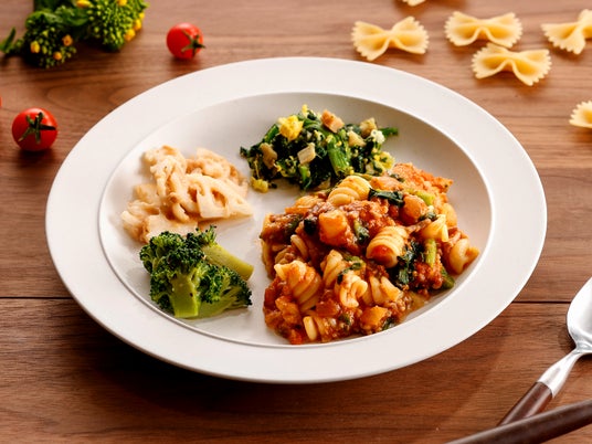 「今回のテーマは、ご自宅でカフェのような食事が楽しめる『デリプレート』です。主役のパスタには、ボロネーゼソースと相性の良い『フィジリ(螺旋状のパスタ)』を採用しました。この独特のネジネジとした形状が、具材たっぷりのソースをしっかりと抱き込み、噛むほどに小麦と肉の旨味が口いっぱいに広がります。そこに合わせるのは、ホクホクとしたジャガイモと、旨味をたっぷりと吸った菜の花です。濃厚なボロネーゼソースの中で、菜の花の苦味がプレート全体のコントラストに。大人の味わいに仕上げました。」