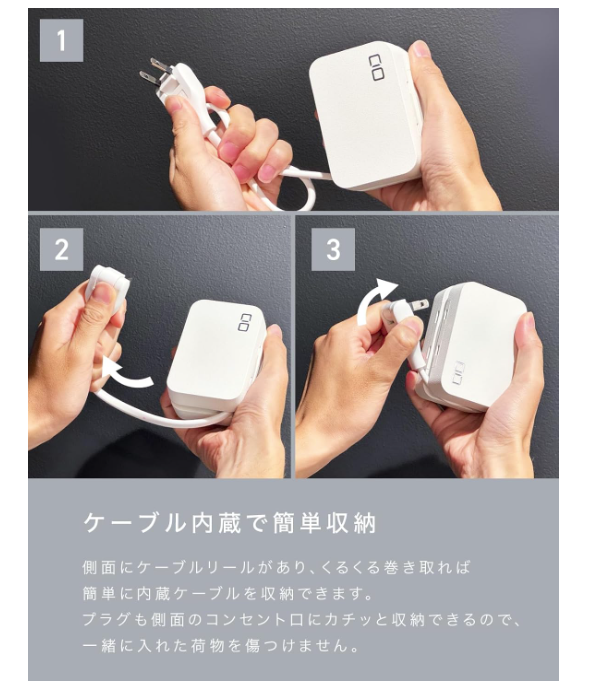 持ち運び最強クラスのケーブル内蔵&コンパクト設計