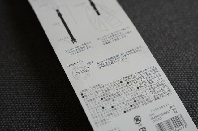 取り付け用のカラビナの内径が約2.5cmとやや小ぶりなため、持ち手が極端に太いバッグには通らない可能性があります。