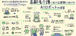 高齢者の孤立問題の解決として、自宅に設置する介護ロボットを考案。カメラが内蔵されており、転倒などを検知した場合には自動で通報をする。また利用者の関心や生活スタイルをAIが学習し、適切なコミュニケーションを行う。