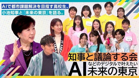4回目を迎える今年度は、「AIなどのデジタルで叶えたい『未来の東京』」をテーマとして、都内4校12名の高校生が未来の東京に向けたアイデアを小池知事に提案しました。イベントではAIを活用した提案として、スマートグラスを活用した観光案内、検知器等による浸水対策、行政手続きの簡略化や高齢者見守りサービスなど高校生から発表があり、知事と施策について意見交換を行いました。