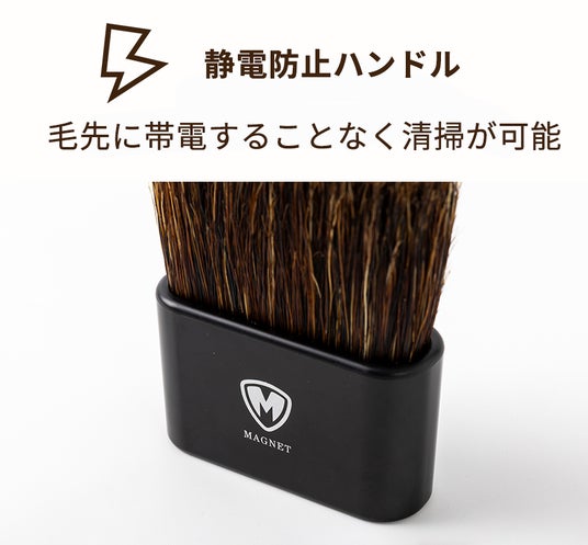 広い面を一気に清掃できるだけでなく、静電気で飛び散る微細な粉を簡単に清掃できるよう、筐体部は通電性のある素材を使用し、静電気を指先を通じて逃がす仕組みになっています。