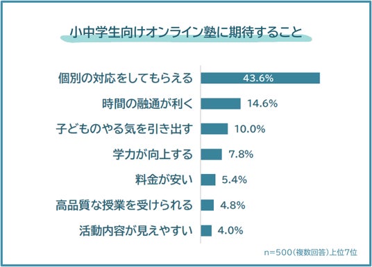 小中学生向けオンライン塾に期待することは「個別の対応をしてもらえる」