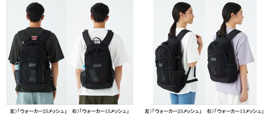 「ウォーカー25メッシュ」(容量約25L)と「ウォーカー15メッシュ」(容量約15L)は、本体表面にポリエステルのメッシュ生地を使用しているバックパックで、生地以外のサイズや機能などは、既存のウォーカーシリーズのバックパックと同様の仕様です。