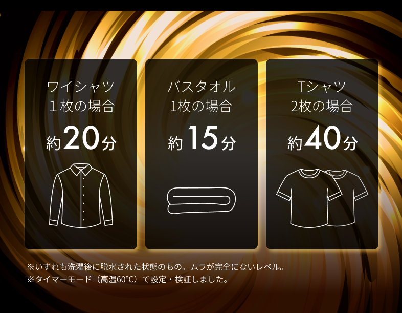 - 急速乾燥で時短家事を実現:ワイシャツ1枚約20分のスピード乾燥