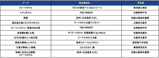さらに、テーマ別ランキングの「シティホテル」や「オーシャンビュー客室のある宿」に加え、エリア別「近畿」でも首位を獲得するなど、複数のテーマで高い評価を受けました。
