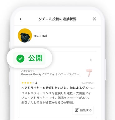クチコミは商品選択時において参考になる情報のひとつです。多くのユーザーが何らかの形でクチコミを参考にしながら商品を購入しているのではないでしょうか。本キャンペーンを通して、マイベストで紹介している商品を実際に使用してみた感想をクチコミという形で共有してもらうことで、他のユーザーの選択をサポートしあえるような相互扶助のエコノミクスを実現したいと考えています。