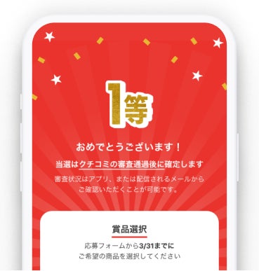 事務局の確認後、クチコミが公開され次第プレゼントを発送いたします。さらに参加賞として1,000ポイント(100円相当)をもれなくプレゼントいたします。