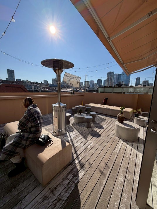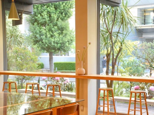 寒さの残る2月、表参道店のテラスは日当たりがよく、ストーブもご用意しています。表参道店の営業時間は1月から変更して11:00~17:30、永田町店はこれまで通りの営業時間で営業いたします。