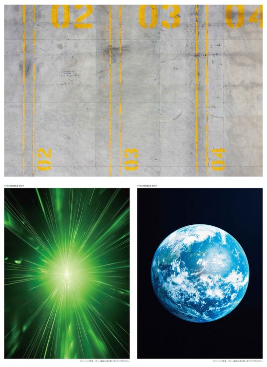 本書の巻末には、綴じ込み式でB3サイズの特大ポスターを付録。『PG UNLEASHED 1/60 νガンダム』の精密感を実感できるキービジュアルと、格納庫や宇宙などをイメージしたビジュアルを、表面と裏面にそれぞれプリントしたレアアイテムです。プラモデルを作る部屋に飾ったり、ディスプレイしたプラモデルの背景に貼ったりと様々に活用できます。