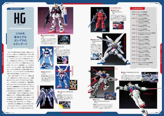 1980年~、2002年~、2020年~、2025年以降という4つの章で構成し、それぞれの扉ページでは、28年間にわたってプラモデル開発に携わってきたBANDAI SPIRITSの担当者の逸話も。激レアなアイテムを含む45年の歴史をまとめた序章の年表も含めて、ガンプラに詳しいファンにとっても必読の内容になっています。