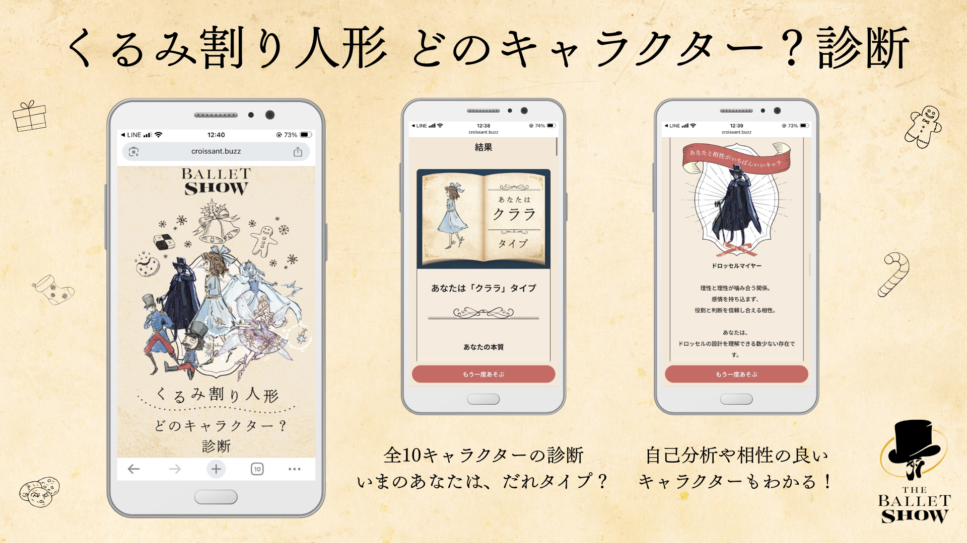 是非、ハッシュタグ「#クララとくるみ割り人形診断」をつけて、SNSでもシェアしてください。