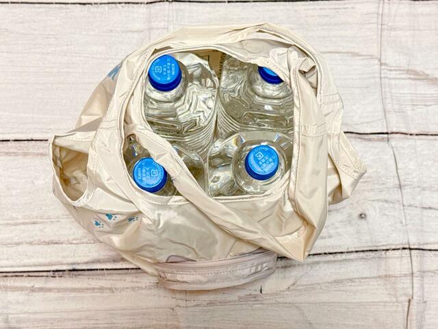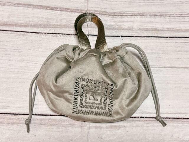 上部には持ち手付きで、持ち運びもラク。持ち手や巾着紐にも光沢感のある素材が使われており、全体的に高見えします。