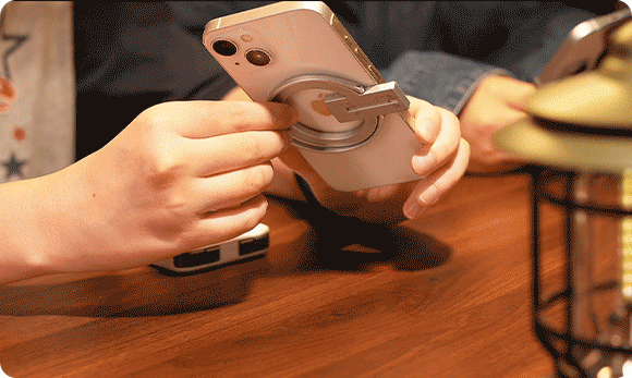 強力な磁気リングは、180度調整可能なスタンドとしても機能。新幹線やカフェのテーブルでは、スマホを立ててコントローラーを分離した「セパレートモード」でリラックスしてプレイしてください。