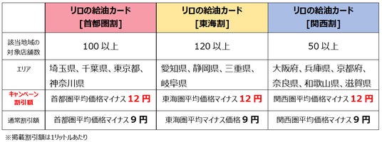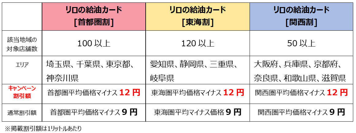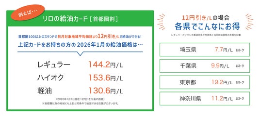 さらに、「リロの給油カード 地域割」新登場を記念し、2025年10月から2026年3月31日まで、対象地域平均価格マイナス12円のBIGキャンペーンを実施しております*6