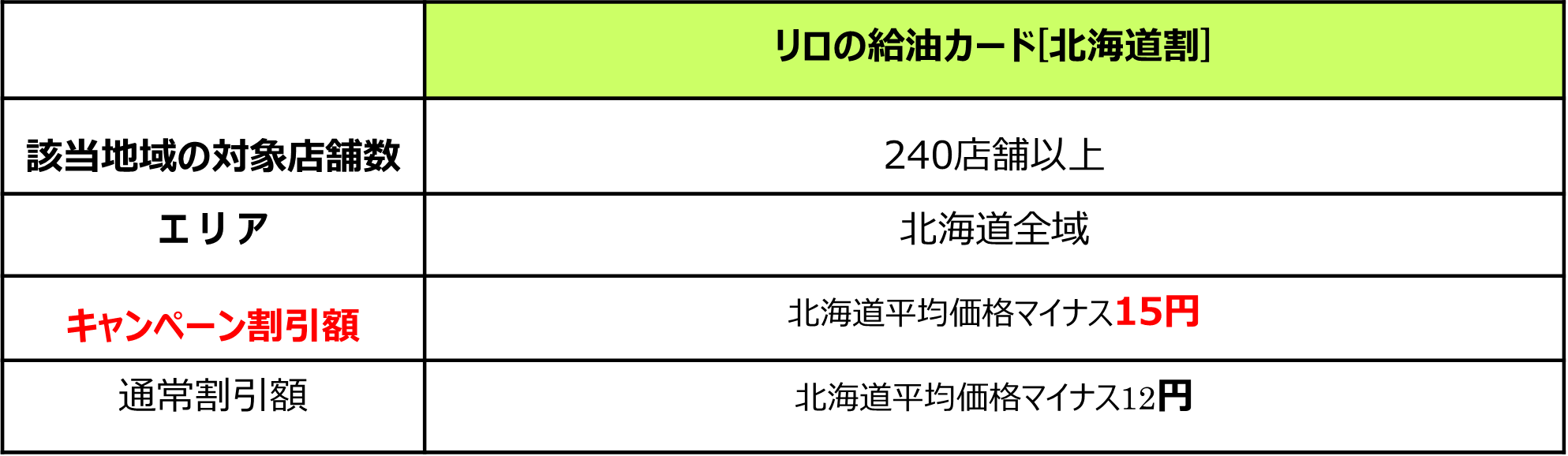 さらに、北海道エリアへの拡大を記念し、2026年1月から朝晩の冷え込みが和らぐ6月30日までの期間、北海道地域平均価格から1リットルあたり15円引きで給油いただけるキャンペーンも実施いたします。