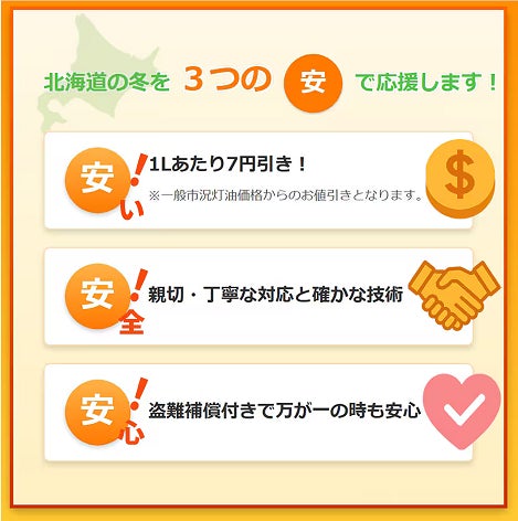 ■ 「リロの宅配灯油」(北海道限定)」の定期配送なら、3つの「安」で嬉しい応援!