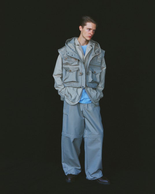 袖や裾のパーツを取り外せる可変構造を採用し、ひとつのアイテムがシーンに応じて姿を変えることで、多様な着こなしを実現できる柔軟性と実用性を兼ね備えたコレクションとなっています。