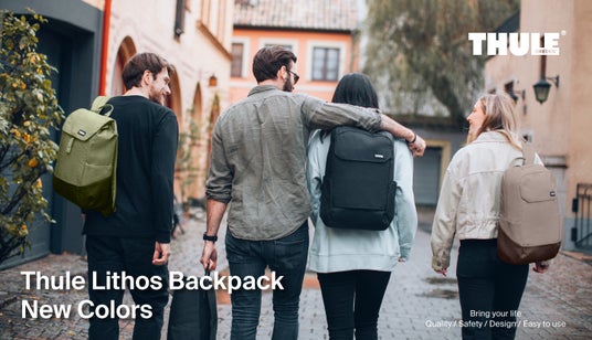 【Thule Lithos】は北欧らしいミニマルデザインに、SafeEdge PCスリーブや整理収納機能を備え、街散策や通勤通学に便利なデイパックです。