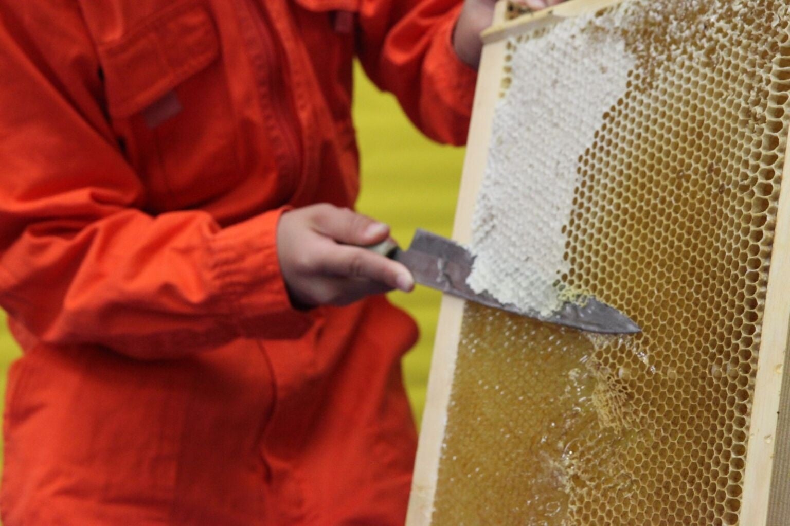 蜜蓋を取り除き、遠心分離機ではちみつを出す、貴重な体験