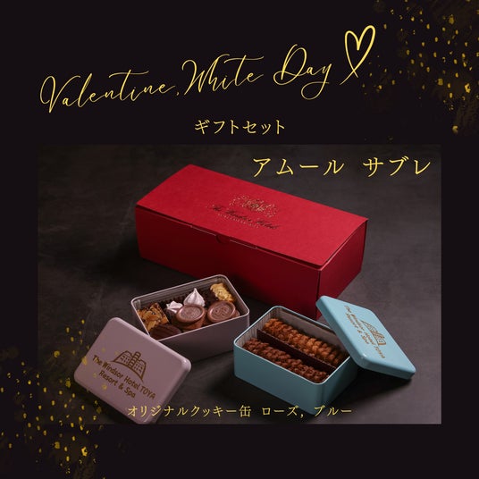 アムール サブレホテルロゴ入りのオリジナルクッキー缶2種を詰め合わせにしました。