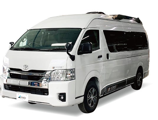 ハイエース・スーパーロングをベースに、独立型マルチルームを新設 。500Ahの大容量リチウム電池により、ホームエアコンを静かに長時間稼働させることが可能です 。都会的で洗練された漆黒の内装「BLACK LINE」も選べ 、究極のゆとりで「大人の二人旅」を格上げする、会場で必見のフラッグシップモデルです 。