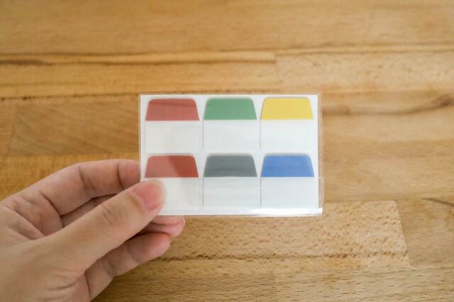 どの月がどのポケットかわからなくなりそうだな〜と思い、「インデックス付箋 厚手フィルムタイプ 25×25」で目印をつけてみました。