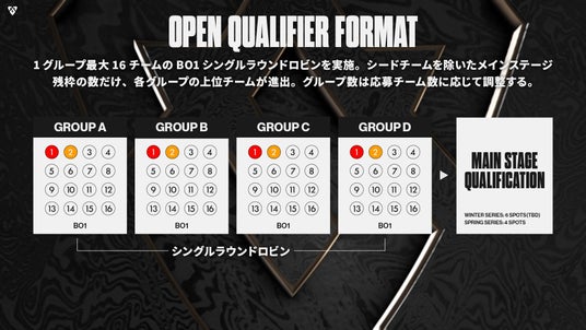 オープン予選を勝ち抜いた上位8チームが合流する「MAIN STAGE 1」から参戦する、シード4チームが以下の通り決定いたしました。