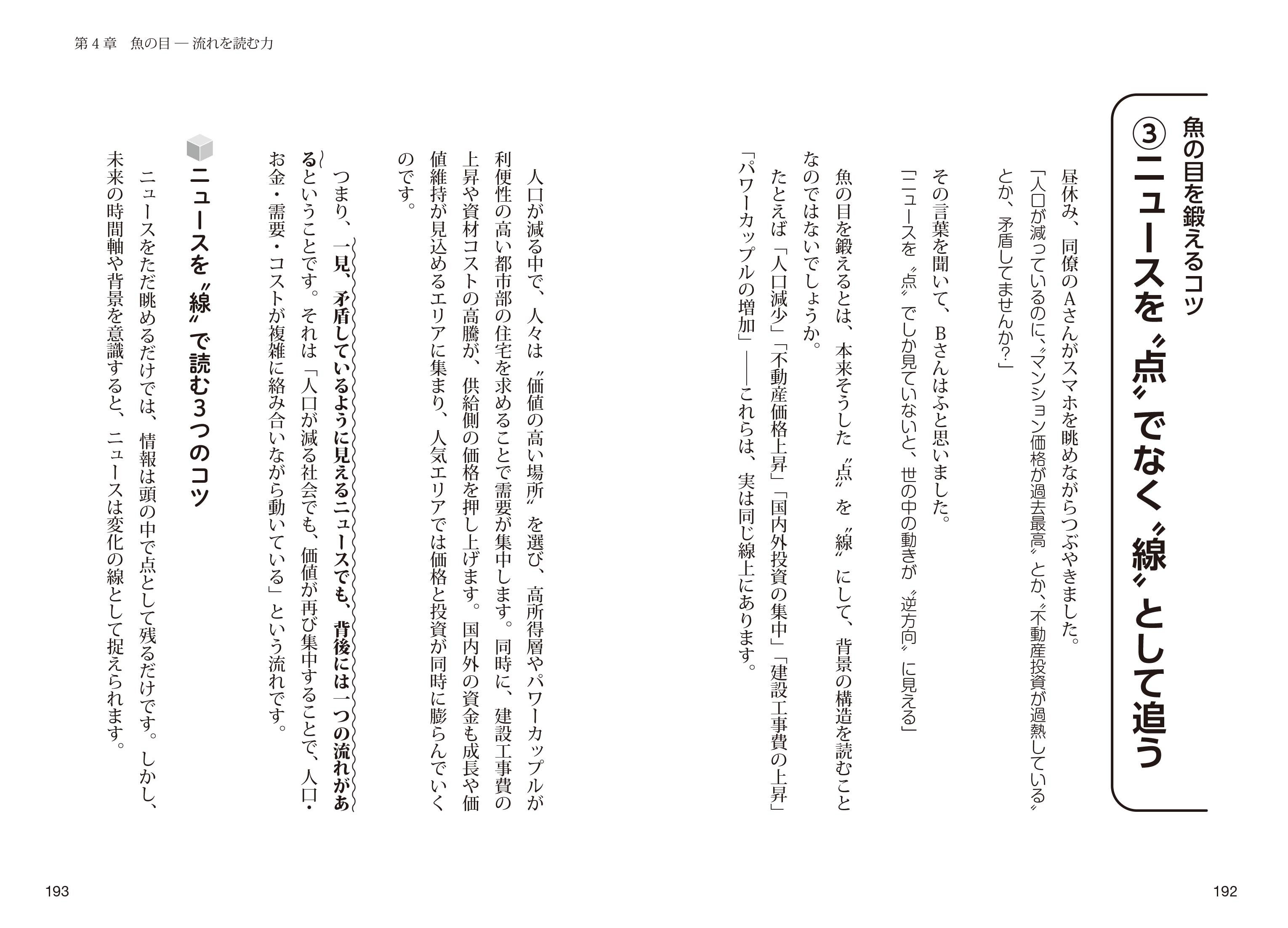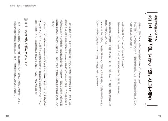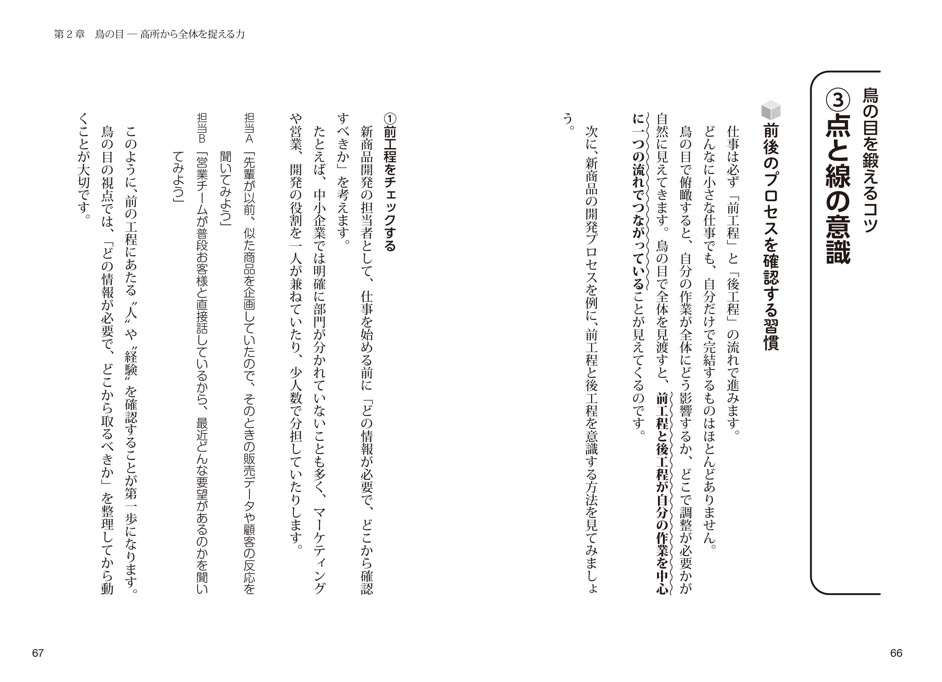 これらは、長年コンサルタントの現場で培った著者が大切にしているもので、できるプロフェッショナルに共通する一生役立つスキル。それが俯瞰力です。