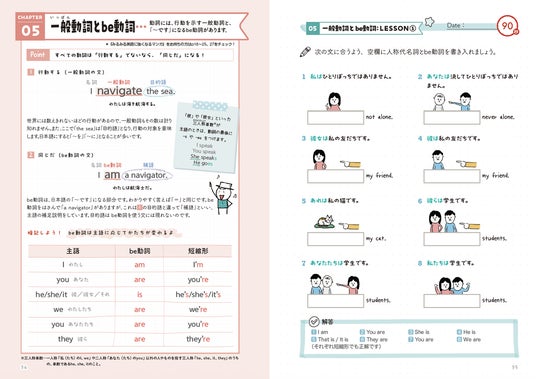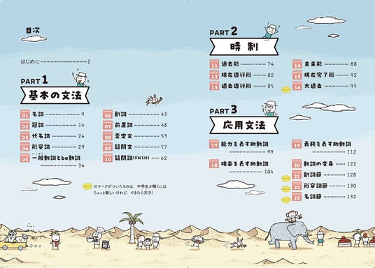 本書は、中学校で習う23の文法を中心に、基礎文法・時制・応用文法の3つのパートで学ぶ、韓国発の英語ドリルです。特に重視したのは、「英語を難しく感じさせない」こと。英語学習では、説明が多すぎたり問題量が多すぎたりすると、学習ペースが落ち、つまずきの原因になりがちです。