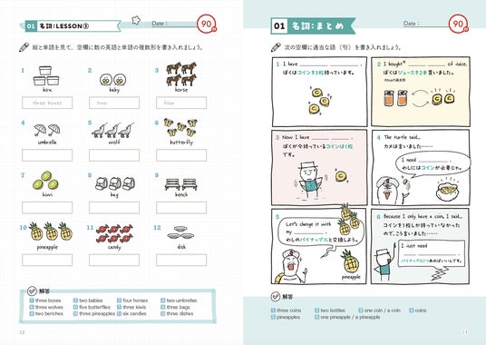 本書は、続々重版で4万部を突破した『ゼロからわかる! みるみる英語に強くなるマンガ』で読んだ内容をしっかり身につけられるドリルです。短い時間で、気軽に続けられることをポイントにしてつくりました。