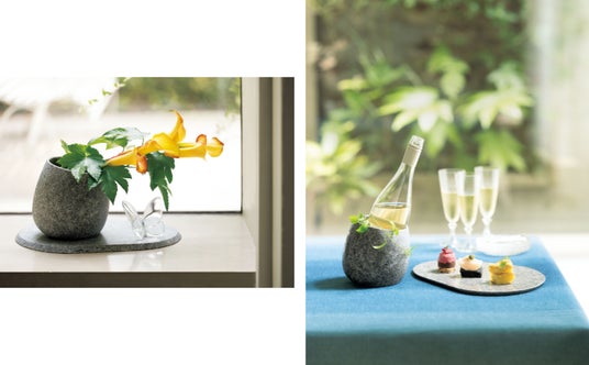 世界的彫刻家イサム・ノグチも賞賛した香川県の銘石「庵治石(あじいし)」は高松市の庵治町と牟礼町だけで産出される花崗岩で石目の美しさ、硬度の高さ、緻密さは世界でも比類なく平安時代より高級な石材として珍重されてきました。その魅力を食卓の華やぎにするべく「クーラー」とお揃いの「プレート」を誂えました。新たな美を纏った庵治石のテーブルウェアは、和洋いずれのテーブルシーンでも世界にたった一つの輝きを放ちます。