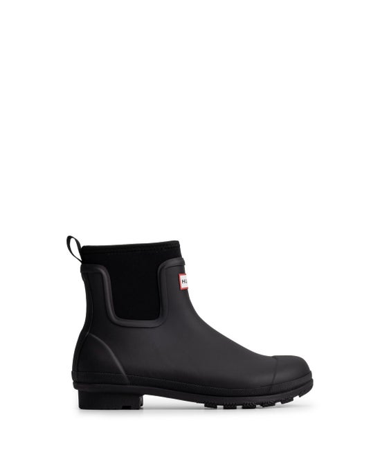 着脱に便利なヒールのプルタブ、アウトソール前方とヒールに凹凸構造を施した一体型ラバーアウトソール、伝統のマスタッシュデザインのトゥキャップ、HUNTER レッドボックスロゴ、アウトソールのHUNTERレッドスケールドットを採用