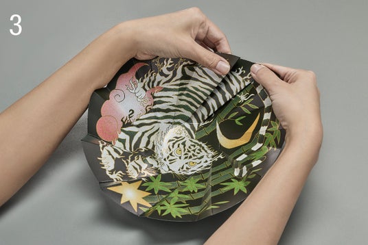 「ORIGAMI-UTSUWA 虎」 太陽の沈む西方を守護。商売繁盛の象徴。邪気を祓い幸せを招く。
